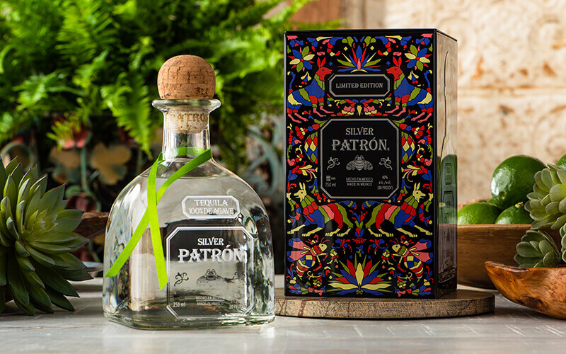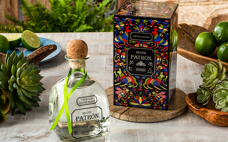 Patrón Silver se presenta en una lata vivaz y meticulosamente diseñada con elementos mexicanos tradicionales.